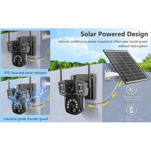 • CONCEPTION ALIMENTÉE PAR L'ÉNERGIE SOLAIRE : Équipée d'un panneau solaire et d'une batterie rechargeable interne, cette caméra assure une alimentation électrique continue et offre une protection toute l'année sans interruption.